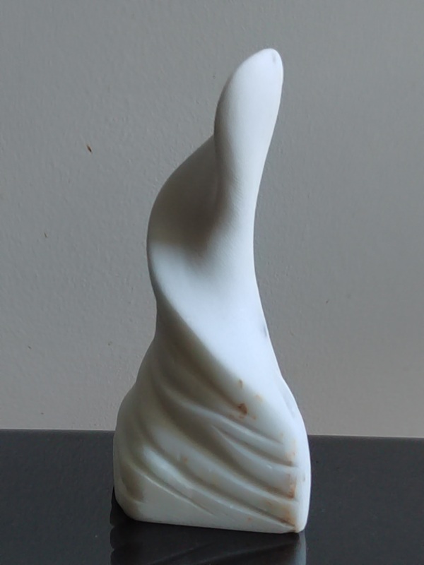 Nelly Waisbaum explore le paradoxe du mouvement au cœur de l'immobilité. À travers le travail du marbre, de l'albâtre et de la pierre calcaire, elle donne vie à des formes tourbillonnantes et des spirales aériennes qui semblent défier la densité de la matière.